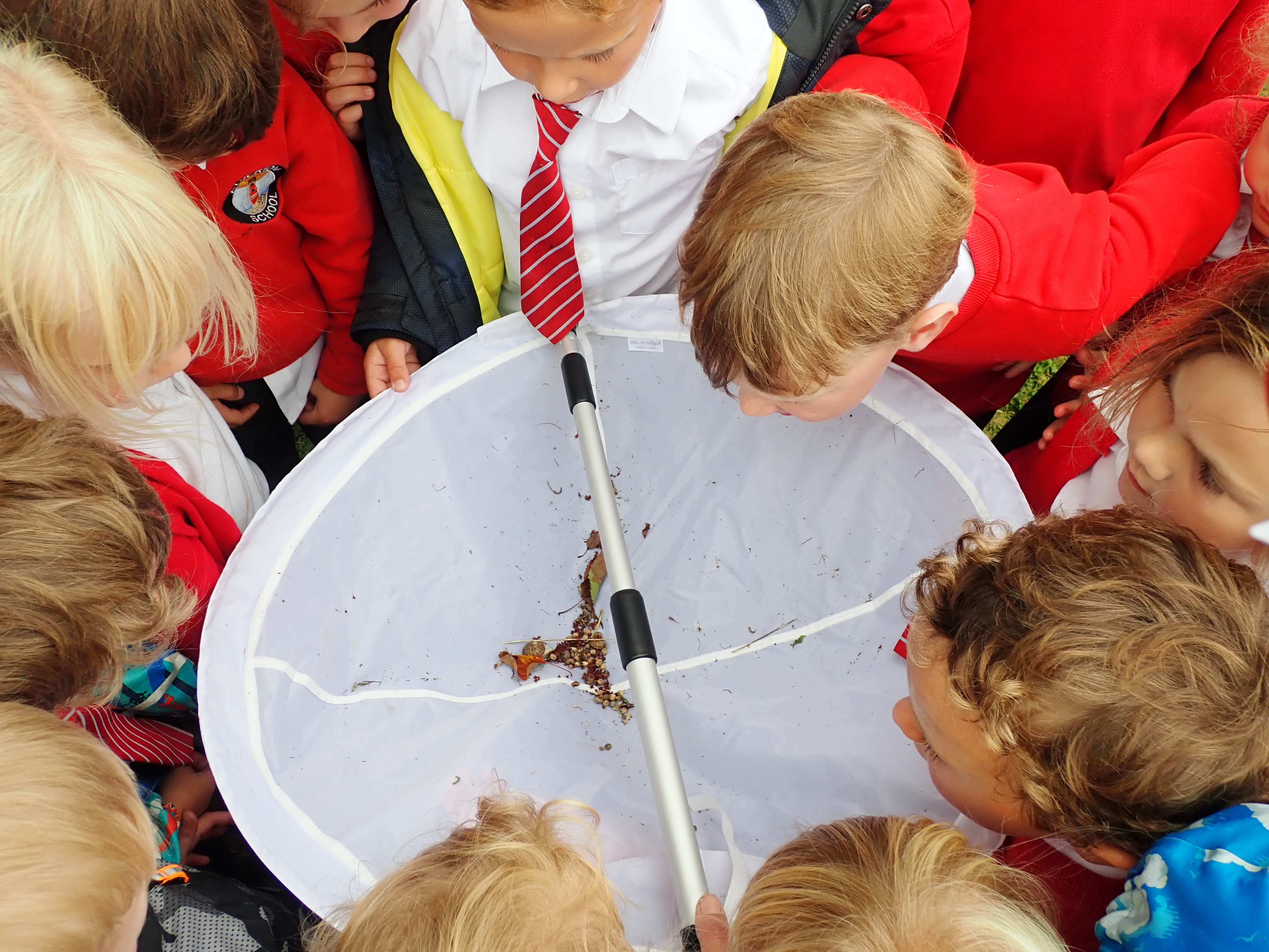"We borrowed a big insect hunting kit from Penwith Landscape Partnership to see what interesting creatures we could find on our school field and we had a brilliant time! There was so much equipment / books / ID sheets that we could take out whole classes, and ended up taking the whole of our year 2 and 3s out as we got a bit addicted to it... Because we got big sweeping nets in the kit we were able to hunt things as a group, shaking trees into the nets, and the simple ID sheets were great to get a general idea about what we had. The books were super detailed, so the children just had a look at the pictures, but I was fascinated with the hoverflies book and ended up taking it home and reading it at bedtime! I discovered that some really unpleasant grubs were baby hoverflies and will be beautiful in the summer – which made me feel a lot better about them. And several children who were not relaxed around insects or frightened of them found themselves drawn into the excitement. I also took a small group out with the kit as one of our pupils was so scared of spiders she couldn’t play on the field at playtime and was missing out. She agreed to just be about whilst the others looked for insects but not have to come close to them. But there were so many fascinating creatures she got closer and closer and ended up holding a jar with a spider inside! She watched it for a while and said “Actually...some spiders are quite cute.” And now she is playing on the field (although her wellies are kept inside because even if they are cute in a jar, in your welly a spider is a different deal). Amazing! We are doing a whole school science week in March and are going to hopefully borrow some more equipment as its been so helpful."